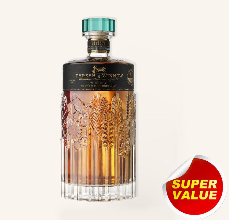 Thresh & Winnow's 10-Year Limited Release Single Cask Rye Whiskey exemplifies the brand's dedication to exceptional craftsmanship and sustainability. Distilled from 100% organic rye and aged for a decade in the heart of the Midwest, this expression captures the essence of well-aged rye. Each bottle originates from a single cask, ensuring a unique and robust flavor profile that reflects the meticulous aging process.