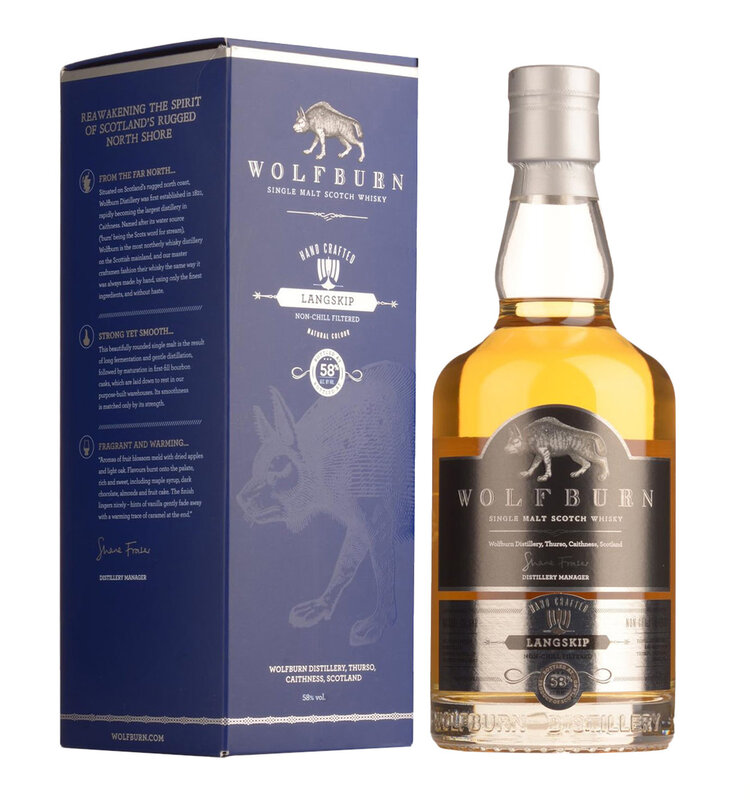 Wolfburn Langskip Single Malt Scotch Whisky is a distinguished expression from Wolfburn Distillery, one of Scotland's most northerly distilleries. Established in 1821 on Scotland's rugged north coast, Wolfburn rapidly became the largest distillery in Caithness. Today, the distillery continues its legacy by crafting award-winning single malt Scotch whisky with meticulous care, using traditional methods that emphasize quality and authenticity.